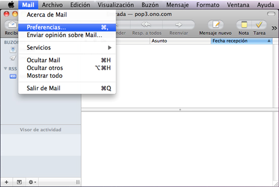 Paso 1. Una vez abierto el programa de correo, seleccione Mail -> Preferencias.