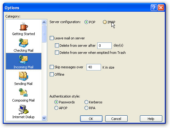En Configuración del servidor seleccionar la opción "POP" y Estilo de autenticación seleccionar "Contraseñas".